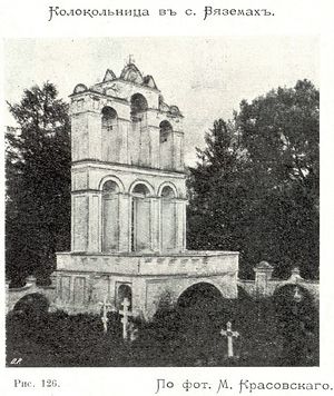 Однако, и после строительства каменной церкви, стоял деревянный терем - Никольская церковь, и даже действовал небольшой Иоанно-Богословский монастырь, известный, как и сам Вяземский ямской стан с 1492 года. И церковь эта, и обитель погибли во времена Смуты.